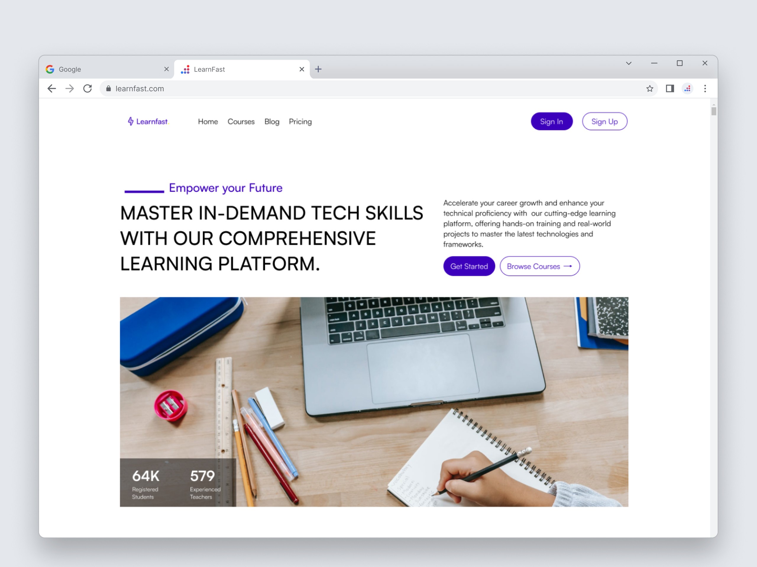 Learnfast is an online learning platform designed to equip users with in-demand tech skills to thrive in today’s competitive job market. The platform offers a variety of courses, ranging from UI/UX design to full-stack development and digital marketing, tailored to meet diverse learning needs. With its user-friendly interface and modern design, the website prioritizes accessibility, flexibility, and practical learning outcomes, ensuring students can learn at their own pace and achieve professional growth.